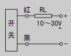 b、直流二线型 10-30VDC。其静消耗〈1mA,输出电流≤ 100mA,输出压降≤ 5VDC,响应频率≤ 300Hz。